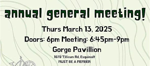 Join us on Thursday March 13th, 2025 at 6:00PM at the Esquimalt Gorge Pavilion.
